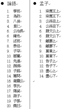 - 下の図は、『論語』と『孟子』の篇名一覧です。