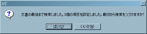 文書の最後まで検索がすむと、下のようなダイアログボックスが表示されます。