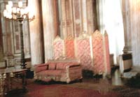 ◎ドルマバプチェ宮殿今日はトルコ観光の最終日。奥さんは、前日からドルマバプチェ宮殿に行くことを主張していた。私は考古学博物館に行きたかったが、「時間がない!」 の一言で却下される。(涙) ドルマバプチェ宮殿は、トルコ・ルネサンス様式の建築で、19世紀半ばの完成になり、五人ほどスルタンがここに居住した。ヨーロッパ、特にフランスのロココ建築の影響が大きい。ここは、泊まっているホテルの近くにあり、窓から宮殿のシンボルたる時計塔が見えるのだが、何せ道が入り組んでおり、しかも坂の町であるイスタンブール。直線距離は近くても、たどり着くのは結構面倒なのだ。 と言うわけで、朝もいつもと変わらないくらい早起き。一応チェックアウトは午後一時まで大丈夫とのことなので、最終的な片づけはその時にすることにして、いざ出陣。 一応、道順はチェックしてあったが、実際に歩くと結構迷う。たまたま前を日本人のバックパッカーらしき男の人が歩いており、通りすがりの人に道を聞いている。「これは、ドルマバプチェに行くに決まっている!」 と合点し、夫婦は即席ストーカーに早変わり。我々の方が歩みが早いので、途中で抜かしてしまった。一応「ドルマバプチェに行くんですよね?」 と聞いたけど。あっちはびっくりしていたようだ。近道に公園を横切る。公園でおじさん達が、お仕事をしている。「ドルマバプチェ、あっちね。」 と指さしてくれた。取り敢えず手を挙げて謝意を示したが、他の方法があったのだろうとちょっと後悔。まだ昨日のグランバザールでのかたくなさを引きずっている。 そんなこんなで、到着。切符売り場の前に同行者の二人がいるのを発見。何でも彼女たちはタクシーで来たそうな。我々はお金がないのと、言葉の問題で歩いてきた。会話って結局根性なんかなあ。 入場券を買う。「何! カメラ持ち込み料込みで、二人併せて9,000,000TLかい!」 むちゃくちゃ高いぞ! どういうことや! ササ(一部意味不明 (^_^;) )他の博物館は、大体500.000TL以下なのに比べて、ここはやたら高かった。しかも同行者は持ち合わせが無く、付設の両替所も十時(今は九時)に空くと言うことなので、皆で考える。たまたまVISAが使えるキャッシャーが有ったので、そこでリラを引き出して何とかなった。イスタンブールはやはり都会だった。 さて、中に入る。セキュリティーチェックはここも厳しい、トプカプ宮殿以上じゃないかなあ。しかも靴にはビニールのカバーをかぶせる。床を汚さない・傷つけないような配慮らしいけど、ずいぶんご大層なことをやる。 確かに中は天井が高くて豪華絢爛だ。あれだけ厳重な警戒をするのにもそれなりの理由がある。フラッシュは禁止だが、当然高解像度のフィルムはここでも装填済み。更に手ぶれももれなくついてくるのが御愛敬だが・・・ 中央の階段を上る。手すりの支柱はガラス細工。専属ガイドの説明では「ベネチアンガラス」 ということだ。う〜ん勿体ない。その他これも有名なバカラのガラス細工もふんだんに使われている。 シャンデリアはでかいし、こちらが清水の舞台から飛び降りた気分で買った、ヘレケの絨毯もそこら中にある(さすがに見学者が歩く部分は、普通の絨毯だった。)。夫婦揃って、右を見ては「ご〜か!」 左を見ては「けんら〜ん!」 状態。確かにゴージャスなのだが、頽廃の気分というか、なんかトプカプ宮殿で見られた大国の余裕というものが感じられない。まあ、この当時はオスマン帝国が領土をバラバラにされて、半植民地化していく過程にあったのだから、本来ならこんなもん作っているはずじゃあないんだが、何処の国でもハコ物を作るのに時を選ばないと言うのは、一緒なのかもしれない。 装飾も綺麗なんだが、さすがイスラム国家。西洋の宮殿にありがちな、宗教がらみの人物装飾(天国や天使、キリスト教絵画)等は全くなく、イスラム伝統の模様が部屋を飾る。途中トルコ風の西洋絵画があった。歴史的名場面を描いた、いわゆる歴史絵画に属するやつだが、世界史の資料集によく載っている、「金角湾に舟を運び入れるメフメト二世」 の絵があった。こんな所にさりげなくあるとは、危うく見逃すところだった。「トルコ紀行」 のタイトルバックに使ってみた。しっかりピンぼけだけど、加工すれば十分使える。(笑) 他にも、ここに住んでいたスルタンの肖像画や写真なども展示されていたが、昔の遊牧君主の面影など、すっかりどっかへ行ってしまい、ギリシア系・スラブ系としか言えない顔をしている。ハーレムの女性に比較的ヨーロッパ系が多かったことが影響しているのだろう。ヒゲがなければ、絶対トルコ人とは気が付くまい。 その後、ハーレムをちょろっと見て、最後にばかでかい式典用の大広間(帝位の間)に通されておしまい。アタテュルクの亡くなった部屋など、見たいところはいっぱいあったが、観光客風情には見せられないのか? 保存に金がかかるのは承知だが、この